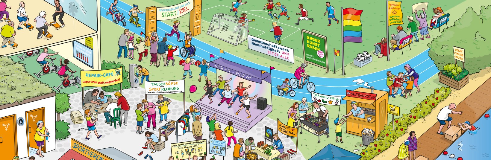 Im Planspiel „Denk- & Spielraum für Nachhaltigkeit im Sportverein“ entwickeln Vorstände und Engagierte praxisnahe Ideen, wie nachhaltiges Handeln im Vereinsalltag konkret, kreativ und machbar umgesetzt werden kann.