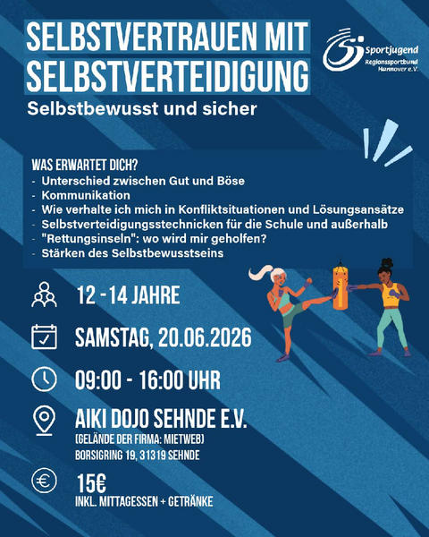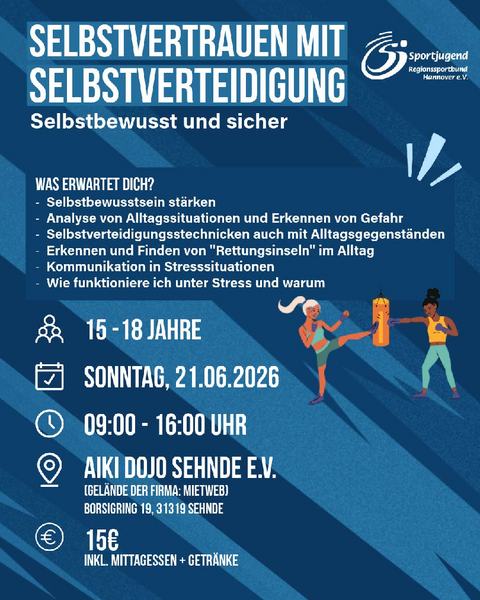 Eine Schulung für die Altersgruppen 12 - 14 und 15 - 18 rund um das Thema Selbstverteidigung!