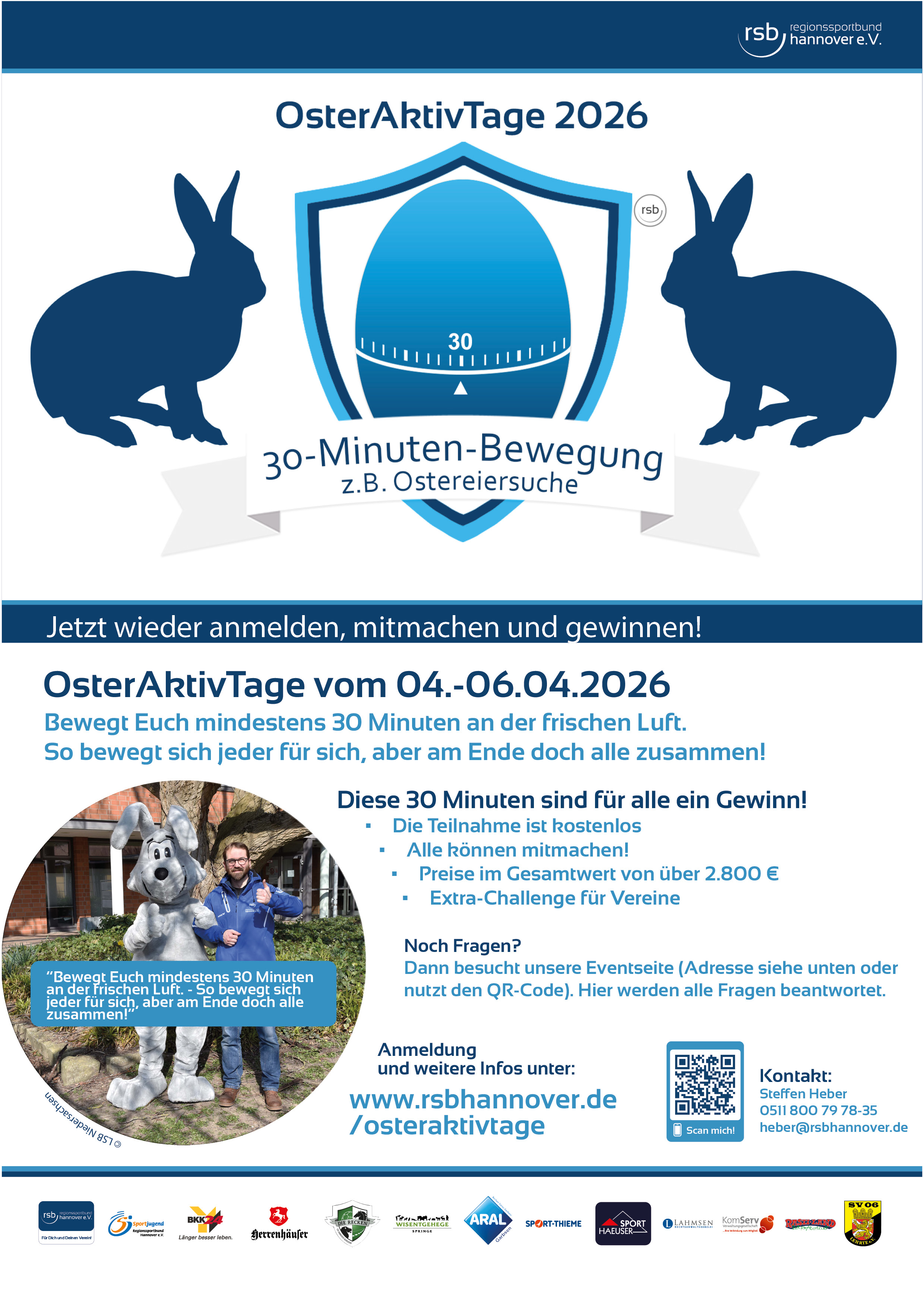 Nach den gelungenen Veranstaltungen der vergangenen Jahre möchte der RSB auch in 2026 über Ostern mit seinem Kooperationspartner, der BKK24, wieder möglichst viele Menschen aus der Region Hannover (unabhängig einer Vereinsmitgliedschaft) dazu animieren, sich innerhalb des Aktionszeitraumes 30 Minuten an der frischen Luft zu bewegen.