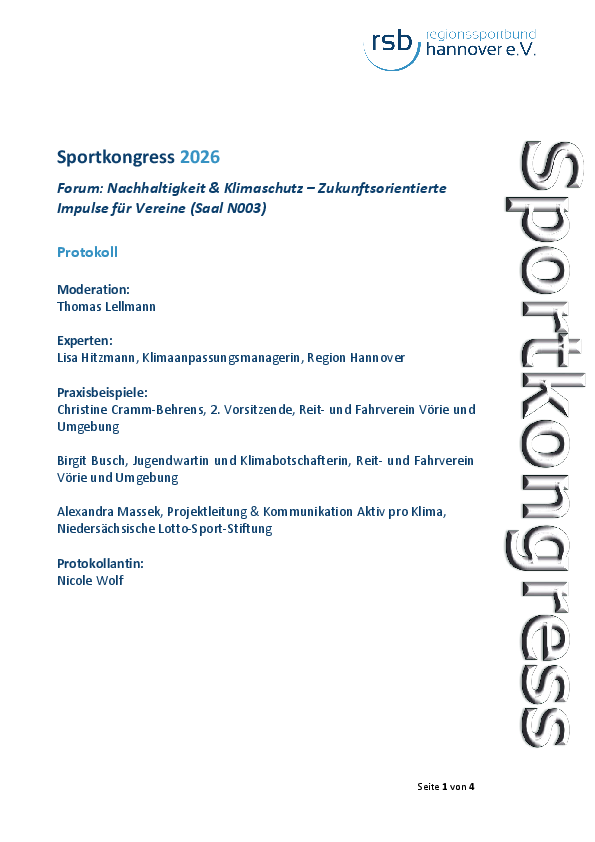 Rund 200 Engagierte aus Sportvereinen, Politik und Verwaltung sind zum 15. Sportkongress des Regionssportbundes Hannover (RSB) im Haus der Region zusammengekommen. Die Veranstaltung bot zahlreiche Impulse für die Vereinsarbeit – von Künstlicher Intelligenz über neue Wege der Ehrenamtsgewinnung bis hin zu Nachhaltigkeit und Klimaanpassung im Sport.