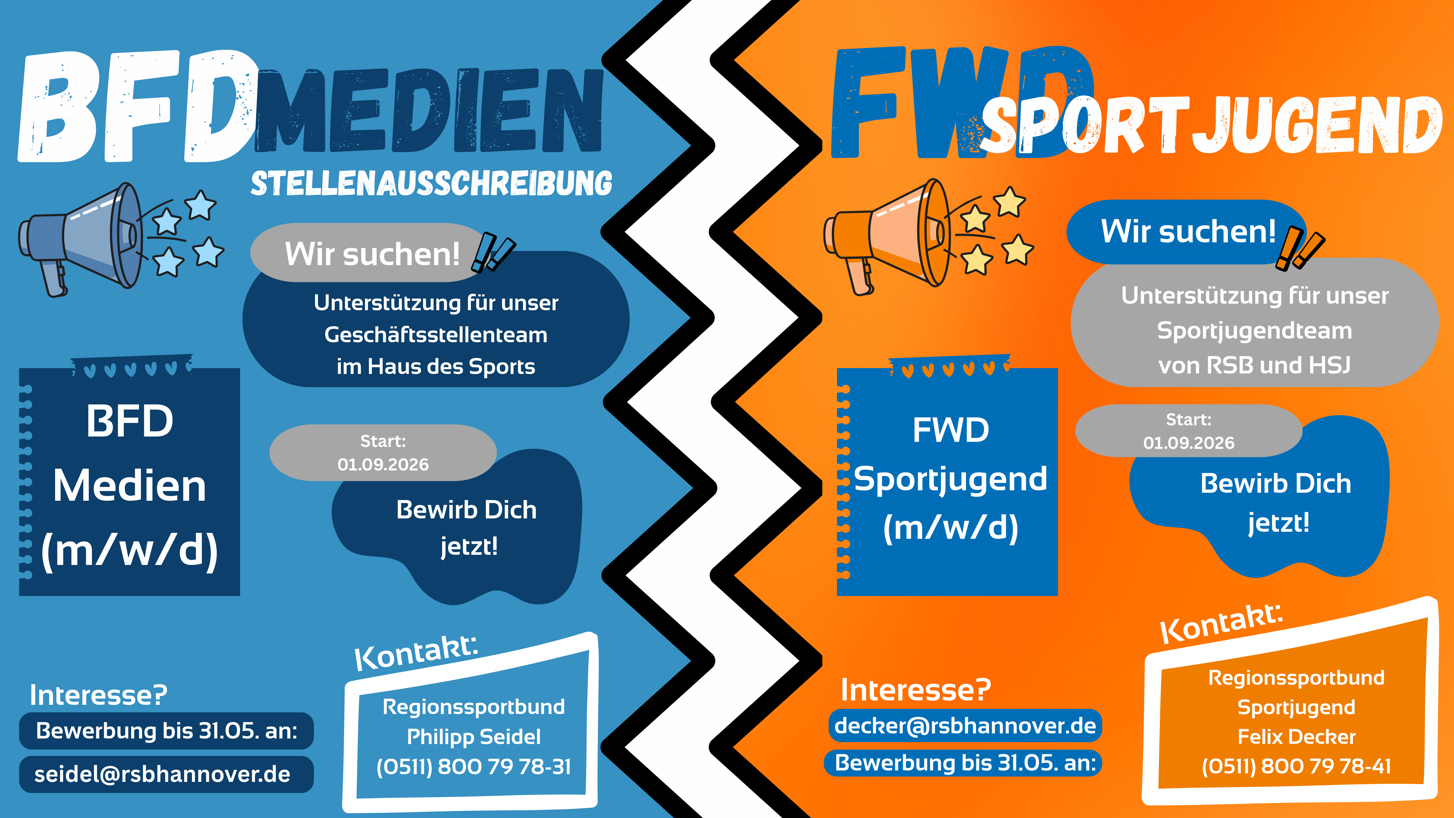 Der Regionssportbund Hannover bietet in 2026 gleich zwei spannende Möglichkeiten im Freiwilligendienst an: den BFD Medien sowie den FWD in der Sportjugend. Beide Einsatzstellen ermöglichen es, praktische Erfahrungen im organisierten…